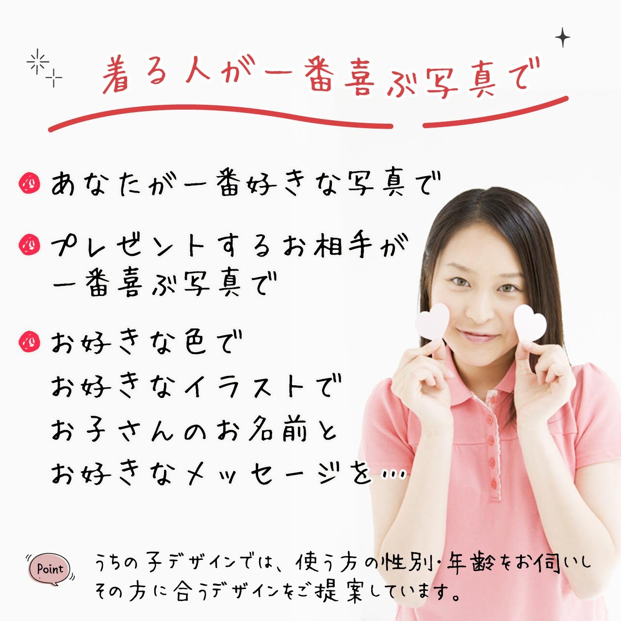 トレーナー、長袖Tシャツのページに掲載しているデザインでの作成も可能ですので、プレゼントされる方に一番合うデザインを(ゆっくり)お選びください♪